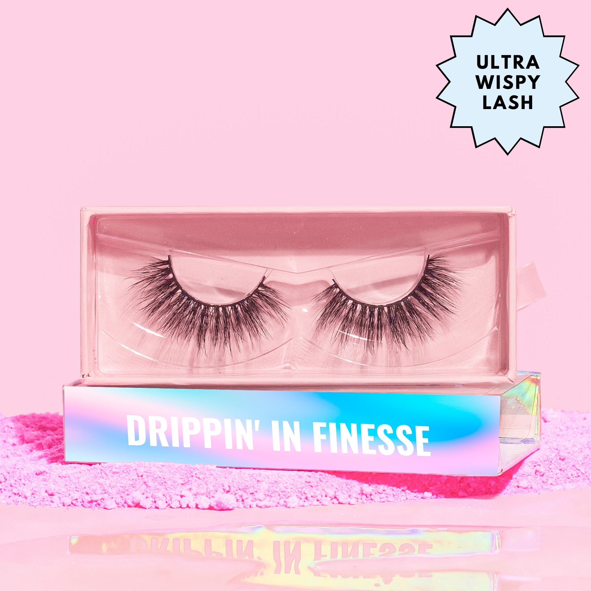 Meet our adored "Drippin' in Finesse" lashes, guaranteeing an instant photo-ready transformation for the inner glam goddess in you. These ultra-wispy lashes with a rounded style add both length and maximum volume, creating a seductive high-end glam look. Perfect for special occasions or whenever you want to feel like a million dollars, these lashes effortlessly capture attention and provide the perfect finishing touch to your glamorous makeup look. Embrace the spotlight, radiate confidence, and dazzle the world with finesse.